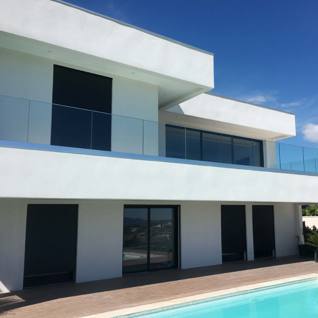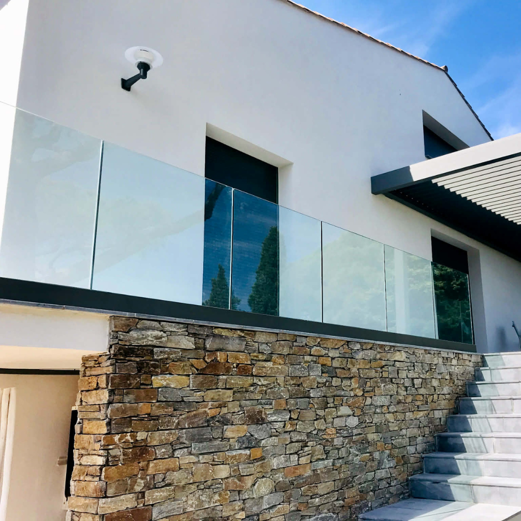 Τοποθετημένο σε βεράντα ή κατά μήκος παταριού, το σύστημα αλουμινίου και γυαλιού προσφέρει ασφάλεια και εξαιρετική στιβαρότητα, με αντοχή σε οριζόντια ώθηση έως 365 κιλά.